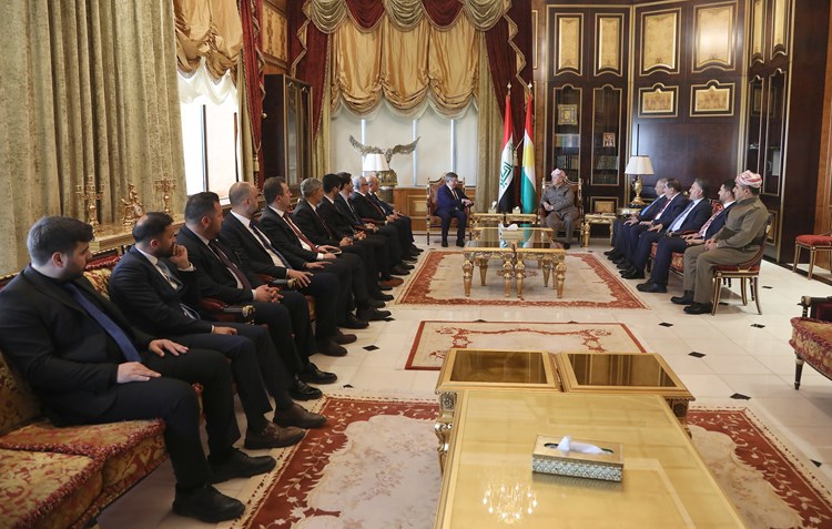 استقبل الرئيس مسعود بارزاني، اليوم الخميس، 22 أيار 2025، في مصيف صلاح الدين، أحمد داود أوغلو، رئيس وزراء تركيا الأسبق ورئيس حزب المستقبل التركي، والوفد المرافق له.