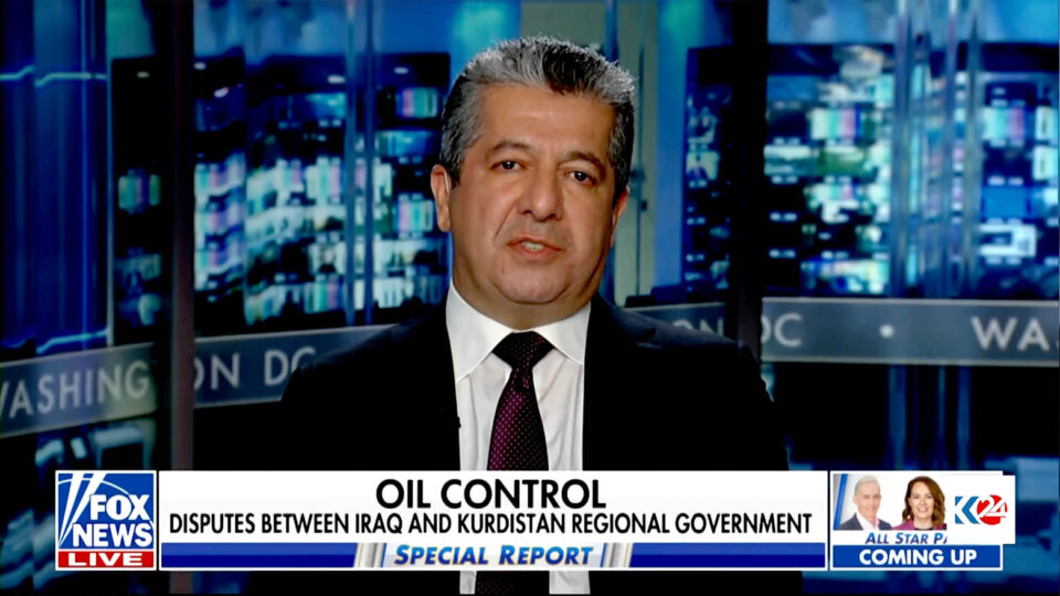 أجرى رئيس حكومة إقليم كوردستان مسرور بارزاني، مقابلة مع قناة “فوكس نيوز” الأمريكية، يوم الجمعة 23 أيار 2025، تطرق فيها إلى زيارته الحالية للولايات المتحدة ونتائجها، بما في ذلك توقيع اتفاقيات مع شركات أمريكية، إلى جانب مناقشة قضايا تتعلق بإقليم كوردستان والمنطقة بشكل عام.