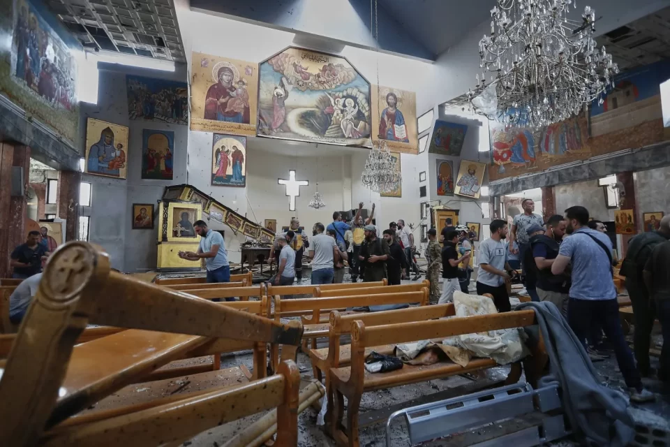 قالت وزارة الداخلية السورية، في بيان، اليوم، إن انتحارياً ينتمي إلى تنظيم «داعش» أطلق النار قبل أن يفجّر نفسه بوساطة سترة ناسفة في الكنيسة.