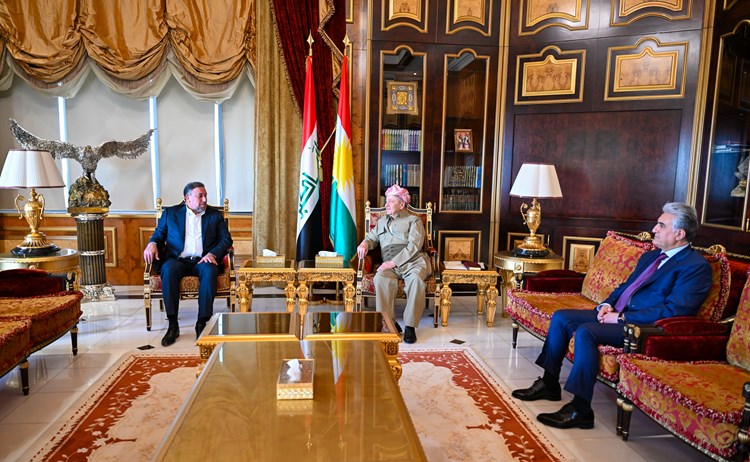 استقبل الرئيس مسعود بارزاني، اليوم الثلاثاء، 5 آب 2025، في مصيف صلاح الدين،  خميس الخنجر، رئيس تحالف السيادة.