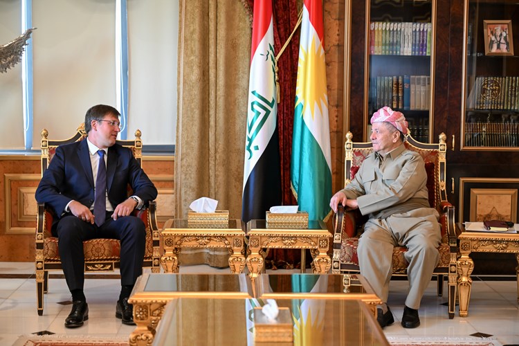 استقبل الرئيس مسعود بارزاني، اليوم الأربعاء، 13 آب 2025، في مصيف صلاح الدين،  ماكسيم روبين، القنصل العام لروسيا في أربيل.