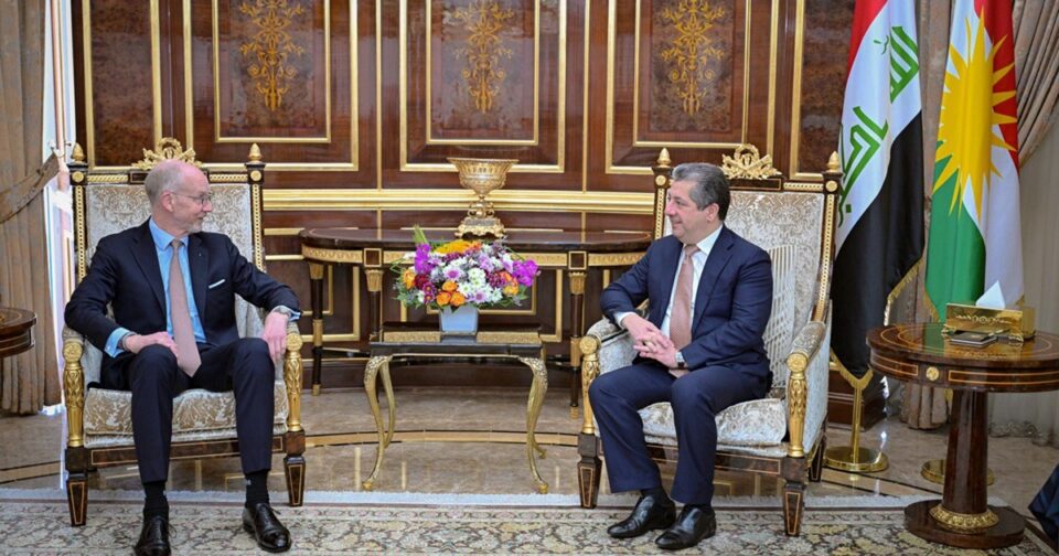 استقبل رئيس حكومة إقليم كوردستان مسرور بارزاني، اليوم الأحد 19 تشرين الأول (أكتوبر) 2025، القائم بأعمال السفارة السويدية لدى العراق السفير يورغن ليندستروم.
