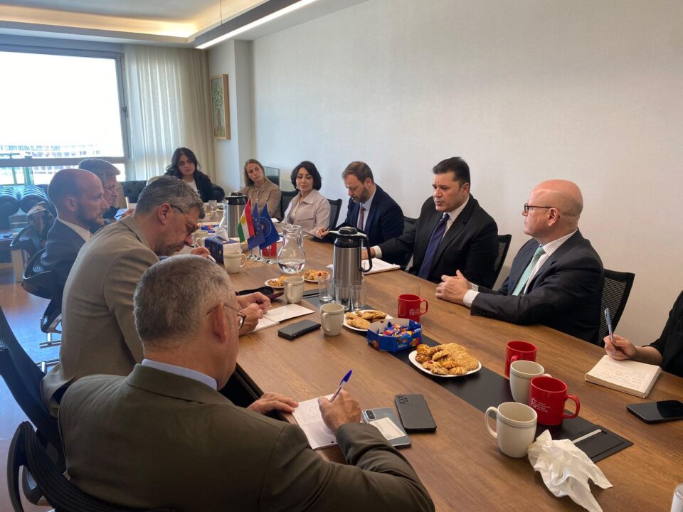 عقد منسق التوصيات الدولية في حكومة إقليم كوردستان ديندار زيباري، اليوم الأربعاء 5 تشرين الثاني 2025، اجتماعاً في مقر بعثة الاتحاد الأوروبي في مدينة أربيل، بحضور ممثلين عن كل من فرنسا، إيطاليا، ألمانيا، هولندا، وهنغاريا.