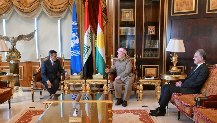 استقبل الرئيس مسعود بارزاني، اليوم الاثنين، 10 تشرين الثاني 2025، في بيرمام، محمد الحسّان، الممثل الخاص للأمين العام للأمم المتحدة في العراق ورئيس بعثة يونامي.