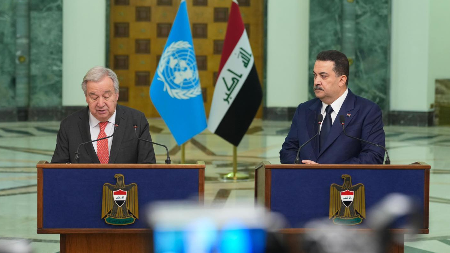 وخلال مؤتمر صحافي في بغداد مع رئيس الوزراء الاتحادي محمد شياع السوداني، قال غوتيريش “هناك أمر واحد يجب أن يفهمه العالم، وهو أن العراق أصبح الآن دولة طبيعية، وستكون العلاقات بين الأمم المتحدة والعراق علاقات طبيعية مع انتهاء مهمة يونامي”.