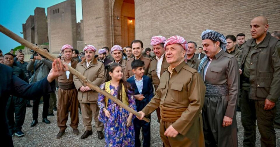 أوقد الرئيس مسعود بارزاني، ورئيس حكومة إقليم كوردستان مسرور بارزاني، مساء اليوم الجمعة، شعلة عيد “نوروز” من فوق قلعة أربيل التاريخية، وسط أجواء احتفالية جسدت معاني الحرية والتجدد لدى الشعب الكوردي.