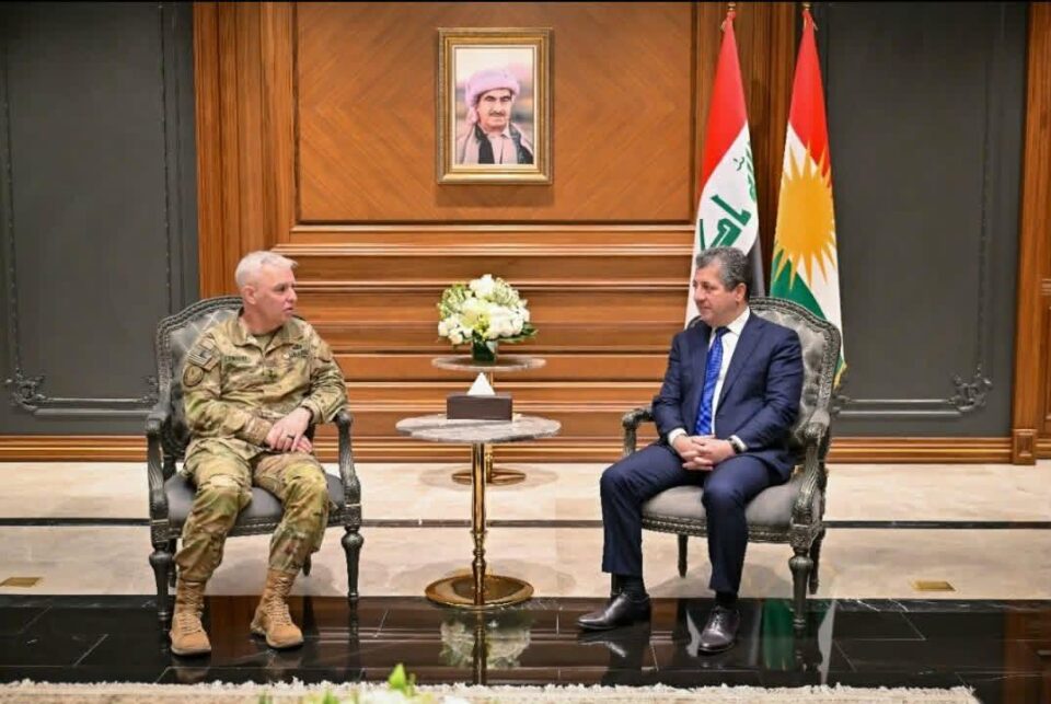 استقبل رئيس حكومة إقليم كوردستان مسرور بارزاني، اليوم الخميس 9 نيسان (أبريل) 2026، القائد العام لقوات التحالف الدولي في العراق وسوريا الجنرال كيفن لامبرت.