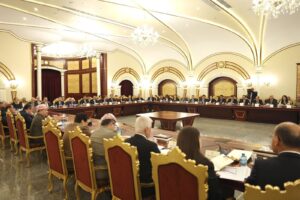 تەوەری چوارەم/ پرۆسەى پێکهێنانى کابینەى دەیەمى حکومەتى هەرێمى کوردستان؛ لیژنەى دانوستاندنەکانى پارتیمان زانیارى و ڕونکردنەوەى پێویستى لەبارەى هەنگاوەکانى ئەو پرۆسەیە پێشکەشى کۆبوونەوە کرد، بەردەوامى هەنگاوەکانى لیژنەى ناوبراو بە مەبەستى پێکهێنانى کابینەى دەیەم بە زووترین کات بەپێوست زانرا.