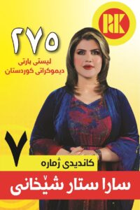 سارا ستار شێخانی گووتی: ئێمە کاندیدانی پارتی دیموکراتی کوردستان زۆر بە سەربەرزانە بەبێ هیچ دوودڵیەک دەچینە ناو خەڵک و داوایان لێدەکەین کە دەنگ بدەن بە پارتی دیموکراتی کوردستان چونکە هەر پارتیە زامنی ماف و چارەنووسمان دەکات لە عێراق و جیهان.