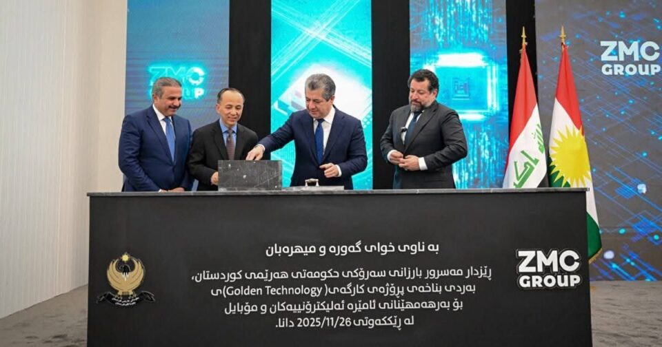 ئەمڕۆ چوارشەممە 11/26، مەسرور بارزانی، سەرۆکی حکومەتی هەرێمی کوردستان، بەردی بناخەی کارگەی (تەکنەلۆجیای زێڕین 2 – Golden Technology 2)ی دانا.