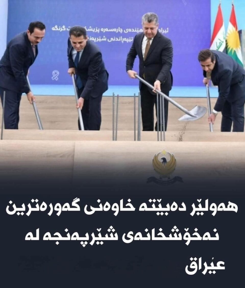 لە ھەولێر، دەربارەی دەست بە دروستکردنی گەورەترین نەخۆشخانەی شێرپەنجە لەسەر ئاستی ھەرێم و عێراق بەستانداردی جیھانی کراوە، باڵەخانەکەی لە قۆناغی تەواوبوون دایە، سەرۆکی حکوومەت بەخۆی چاودێری دەکات و بڕیارە پێش وادەی خۆی تەواو بێت.