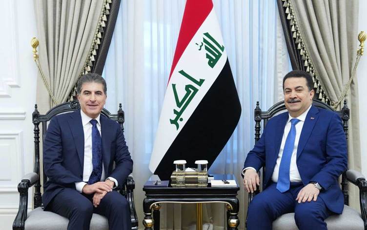 ئهمڕۆ شهممه، نێچيرڤان بارزانى، سهرۆكى ههرێمى كوردستان و محهمهد شياع سوودانی، سهرۆكوهزيرانى عێراقى فيدراڵ، كۆبوونهوه، ههردوولا داكۆكييان لهسهر پێويستيى خێراكردنى دهستپێكردنهوهى بهرههمهێنانى نهوت لهلايهن كۆمپانيا نهوتييهكانهوه له ههرێمى كوردستان و ههناردهكردنهوهى نهوتى ههرێمى كوردستان له ڕێگهى بهندهرى جهيهانى توركييهوه كرد.