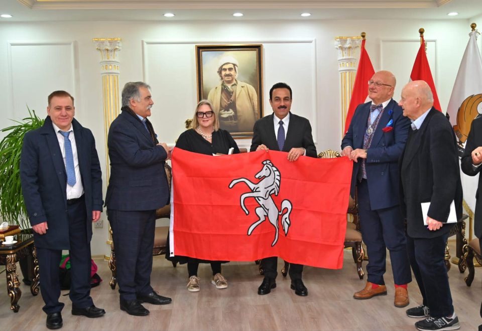 ئەمرۆ یەکشەممە 2025.2.23، ئومێد خۆشناو، پارێزگارى هەولێر، لە دیوانى پارێزگا، پێشوازی لە شاندێکى وڵاتى بەریتانیا کرد، کە پێکهاتبوو لە مارتن راوند، سەرۆکى شارەوانى میدستون و كارين قستەنتين، جێگرى سەرۆکى کۆمەڵەى کرێکارانی هەرێمی کێنت و روجر ليونز، سەرۆکى پێشووى کۆمەڵەى کرێکاران و سەرۆکى یەکێتى سەندیکاى کرێکارانى هەرێمى کێنت و جاسين كابلان و د.خۆشناف قازى و د. فەرحان ئەحمەد.