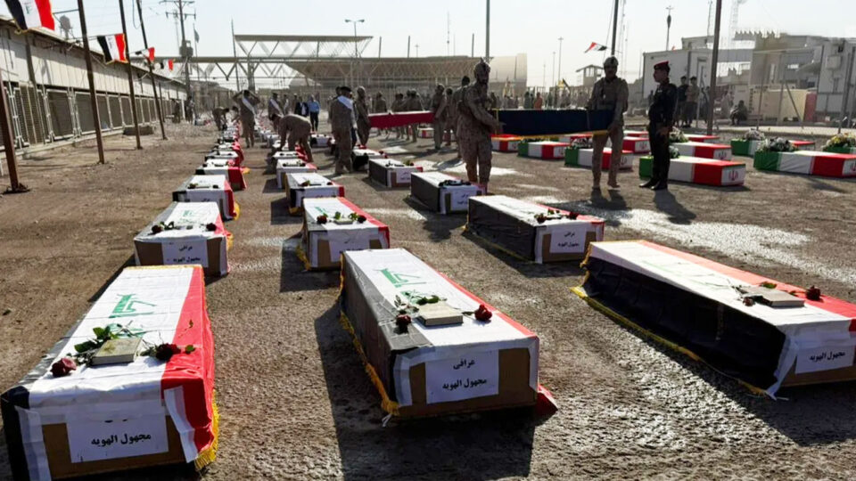 ئەمڕۆ یەکشەممە، 5ـ10-2025، لە دەروازەی سنووریی شەلامچە لە پارێزگای بەسرە ڕێوەڕەسمێک بۆ ئاڵوگۆڕی ڕوفاتی سەربازانی عێراق و ئێرانی بەڕێوەچوو، کە لە شەڕی هەشت ساڵەی نێوان هەر دوو وڵات لە ساڵانی هەشتاکانی سەدەی ڕابردوودا کوژراون.