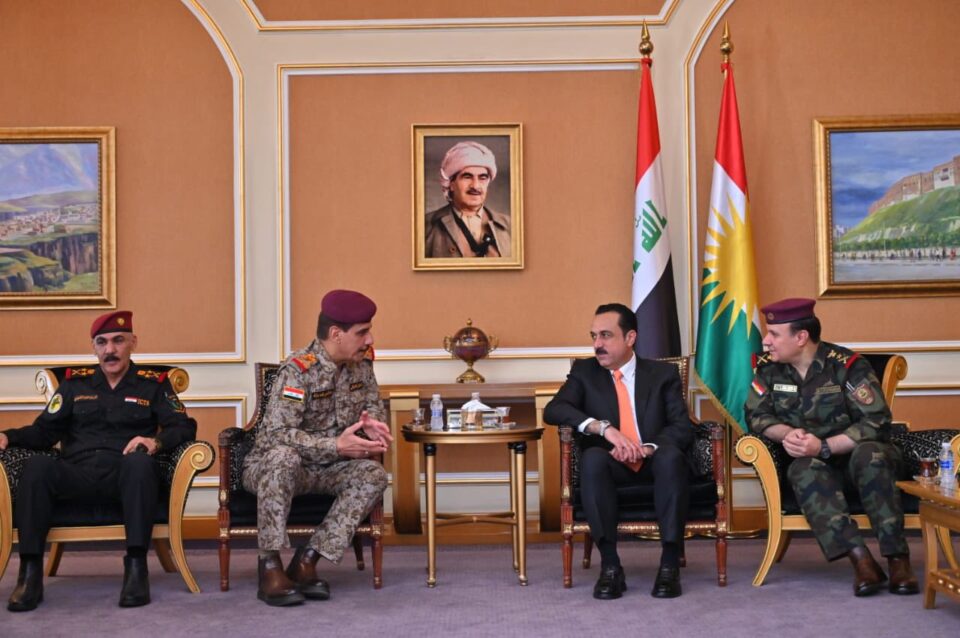 ئەمڕۆ سێشەممە 2025.10.21، ئومێد خۆشناو، پارێزگارى هەولێر، بەیاوەری فەریق روکن عیسا عوزێر، سەرۆکی ئەرکانی وەزارەتی پێشمەرگە و نوێنەری سەرۆكایەتی هەرێم و بەڕێوەبەری گشتیی پۆلیس و فەرماندەى فەرماندەیی ناوچەی یەکی هێزەکانی پاسەوانی سنوور و ژمارەیەكی تر لە ئەفسەر و پلەداران، لە فڕۆکە خانەى نێودەوڵەتى هەولێر، پێشوازی لە شاندێکی باڵای سەربازی و ئەمنی بە سەرۆكایەتی فەریق روکن عەبدولئەمیر یاڕەڵڵا، سەرۆک ئەرکانی سوپای عێراق کرد.