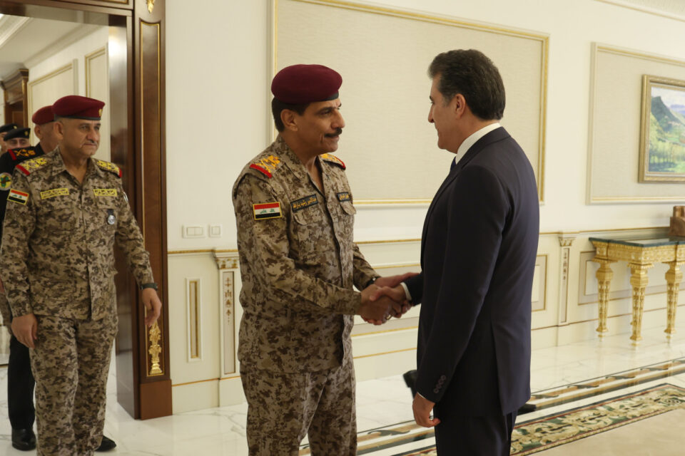 بهيانيى ئهمڕۆ سێشهممه 2025/10/21 بهڕێز نێچيرڤان بارزانى، سهرۆكى ههرێمى كوردستان، پێشوازيى له بهڕێز فهريقى يهكهمى ڕوكن عهبدولئهمير ڕهشيد يارهڵڵا، سوپاسالارى عێراق و شاندێكى ياوهرى كرد كه له ژمارهيهك له پلهدارانى باڵاى سهربازى و ئهمنيى عێراق پێكهاتبوو.