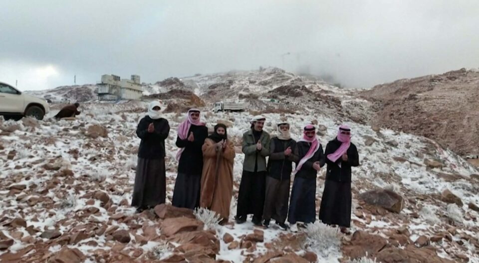 بۆ یەکەمجار لەم وەرزەی زستاندا، شەپۆلێکی سەرما رووی لە ناوچەکانی باکووری ڕۆژئاوای شانشینی سعودیە کرد و بەهۆیەوە چیای بەناوبانگی “ئەللوز” (Jabal al-Lawz) بە بەرگێکی سپی لە بەفر داپۆشرا، ئەمەش دیمەنێکی سەرنجڕاکێشی لە ناوچە بیابانییەکەدا دروستکردووە.