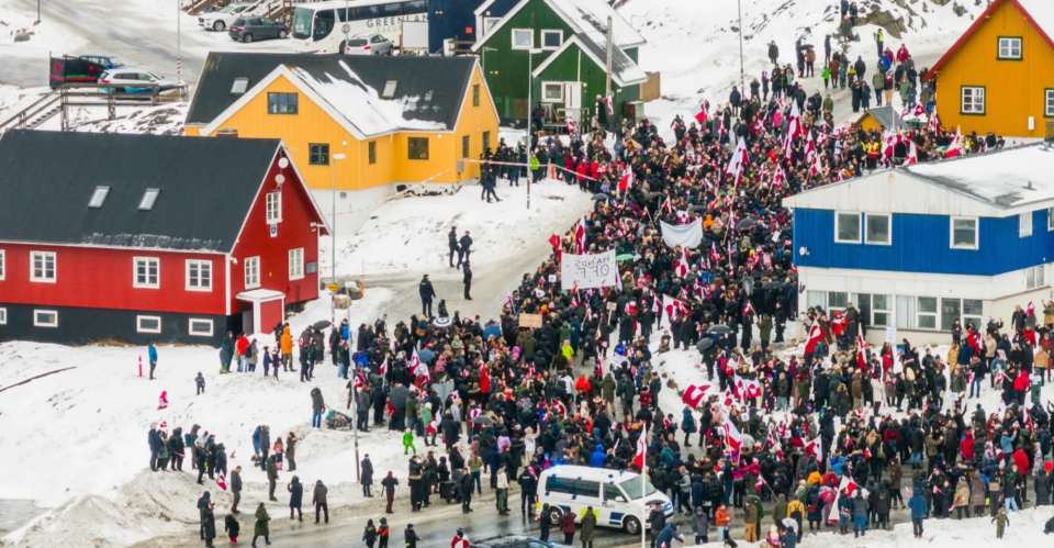 ناڕەزایەتییەکان لە دوێنێ شەممەوە دژی لێدوانەکانی کۆشکی سپی سەبارەت بە بیرکردنەوەی بژاردەکانی ئەمریکا بۆ بەدەستهێنانی گرینلاند سەریهەڵداوە.
