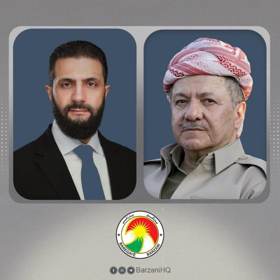 ئێوارەی ڕۆژی شەممە 31ی كانوونی دووەمی 2026 پەیوەندییەكی تەلەفۆنی لە نێوان سەرۆك مەسعود بارزانی و بەڕێز ئەحمەد شەرع سەرۆكی سووریا ئەنجام درا.