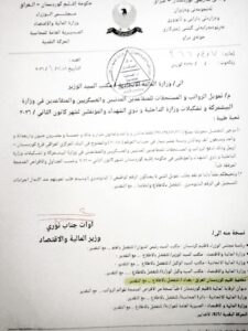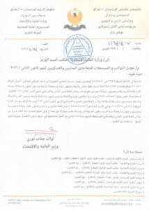 ١- نووسراوی وەزارەتی دارایی و ئابووری هەرێمی کوردستان ژمارە ( ٣٦٦ ) لە (٢٠٢٦/١/٢٧ ) تایبەت بە خەرجکردنی مووچەی مانگی کانوونی دووەمی خانەنشینانی سەربازی و شارستانی.