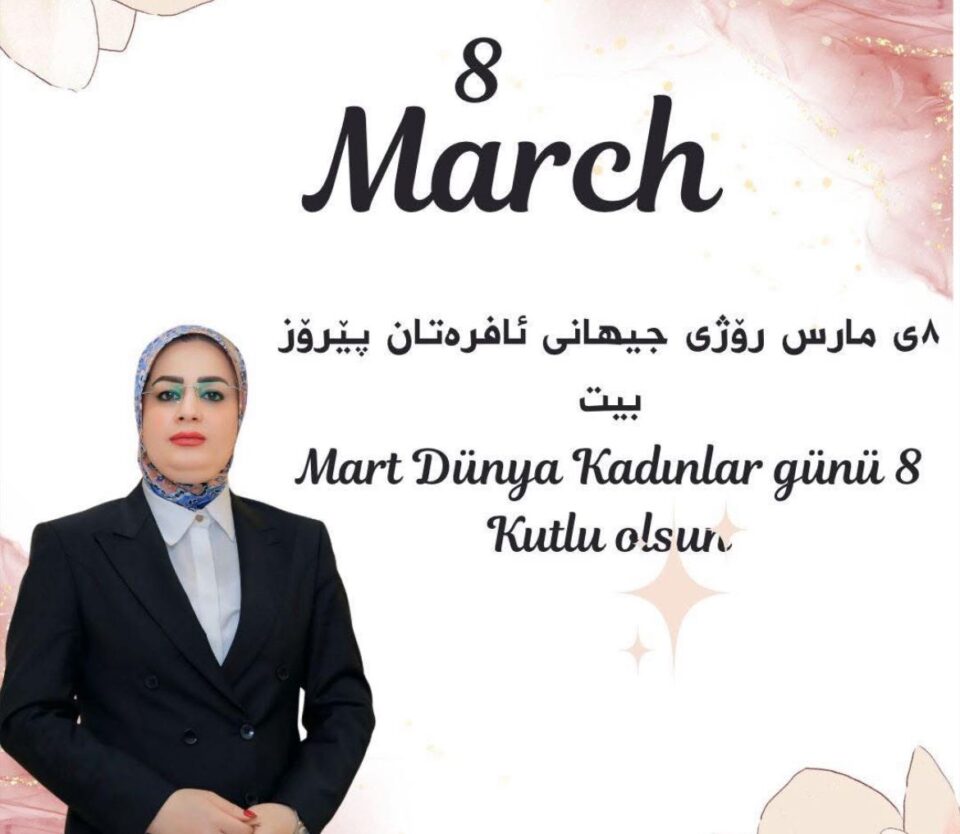 بهبۆنهی رۆژی 8ی مارس رۆژی جیهانی ئافرهتان جێگری سهرۆكی پارتی چاكسازی توركمان پهیامێك بڵاو دهكاتهوه و لهو رۆژهدا بیری كۆمهڵگا دههێنێتهوه كه رۆڵی ئافرهت چهنده گهورهیه.