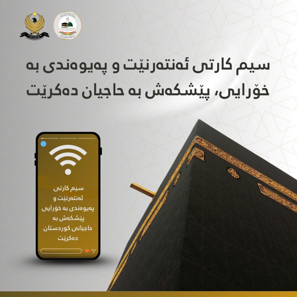 بەرێوەبەرایەتی گشتی حەج و عومڕەی کوردستان رایدەگەیەنێت ئەمساڵ خزمەتگوزارییەکی دیکە پێشکەش بە حاجیان دەکرێت ئەویش دابیکردنی سیم کارتی ئەنتەرنێت و پەیوەندی بەخۆراییە بۆ هەموو حاجیانی کوردستان