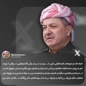 دەقی پەیامی سەرۆک بارزانی؛