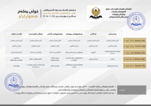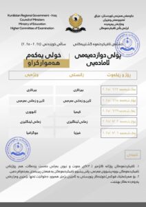 ١- تاقیکردنەوەی وەزاری ( خولی یەکەم ) پۆلی ١٢ی ئامادەیی بەهەموو بەشەکانیەوە بە گوێرەی خشتەی هاوپێچکراو دەبێت.