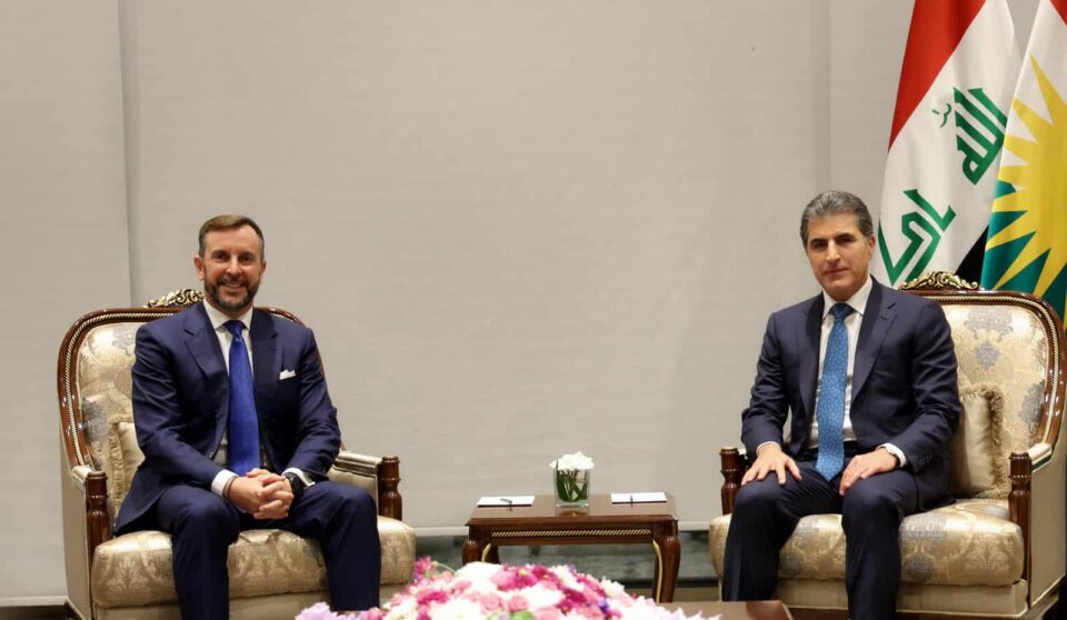 ئێوارهى ئهمڕۆ چوارشهممه 2025/10/8 بهڕێز نێچيرڤان بارزانى، سهرۆكى ههرێمى كوردستان، له كۆبوونهوهيهكدا لهگهڵ بهڕێز نيكۆلۆ فۆنتانا، باڵيۆزى ئيتاڵيا له عێراق، جهختى له گرنگيى پهيوهندييهكانى عێراق و ههرێمى كوردستان لهگهڵ ئيتاڵيادا كردهوه، ههروهها سوپاسى پشتگيرى و هاوكارييهكانى ئيتاڵياى بۆ ههرێمى كوردستان كرد.