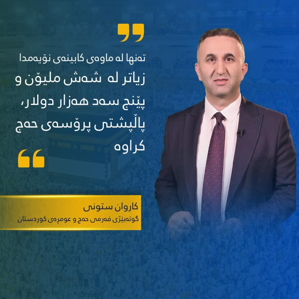 كاروان ستونی گوته‌بێژی حه‌ج و عومڕه‌ی كوردستان رایگه‌یاند له‌ ماوه‌ی چوار ساڵی كابینه‌ی نۆیه‌می حكومه‌تی هه‌رێمی كوردستان به‌ سه‌رۆكایه‌تی رێزدار مه‌سرور بارزانی به‌ مه‌به‌ستی كه‌مكردنه‌وه‌ی خه‌رجی حه‌ج له‌سه‌ر هاووڵاتیان هه‌ر ساڵێك به‌ بڕی جیاواز پاڵپشتی حه‌ج كراوه‌.