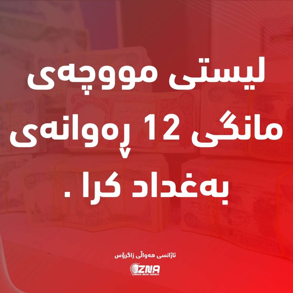ڕۆژی سێ شەممە ( ١٦ ی کانوونی یەکەمی ٢٠٢٥ ) لیستی مووچەی مانگی کانوونی یەکەمی فەرمانبەران و مووچەخۆرانی هەرێمی کوردستان لەلایەن تیمی تەکنیکی وەزارەتی دارایی و ئابووری هەرێمی کوردستانەوە ڕەوانەی شاری بەغداد کراو بڕیارە سبەی چوارشەممە ڕادەستی فەرمانگەی ژمێریاری وەزارەتی دارایی حکومەتی فیدراڵ بکرێت.