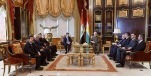 رۆژی دووشەممە، 12ی کانوونی دووەمی 2026، لە پیرمام، سەرۆک مەسعود بارزانی پێشوازی لە شاندێکی دەستەی بەڕێوەبەرایەتی یانەی وەرزشی ئامەد (ئامەد سپۆر) بە سەرۆکایەتی سەرۆکی یانەکە، بەڕێز ناهید ئەرەن کرد.