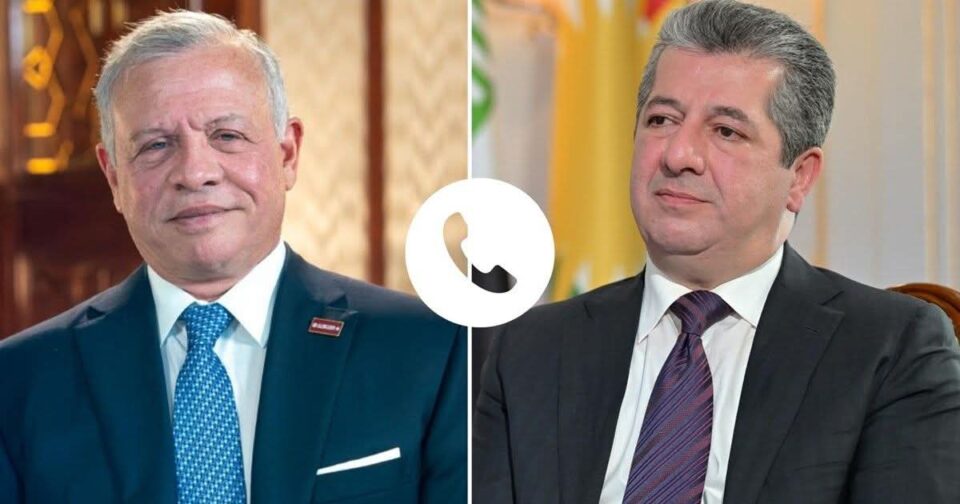 ئەمڕۆ چوارشەممە 3/18، لە پەیوەندییەکی تەلەفۆنییدا، مەسرور بارزانی، سەرۆکی حکومەتی هەرێمی کوردستان و شا عەبدوڵلای دووەم، شای ئوردن ،دۆخی گشتیی هەرێمی کوردستان و عێراق و ئوردن و ناوچەکە و پەرەپێدانی زیاتری پەیوەندیی دوولایەنەیان تاوتوێ کرد.