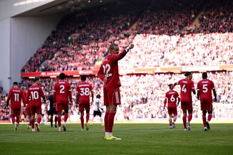 لە خولی 28ی خولی ئینگلتەرا یانەی لیڤەرپوڵ لە نێو ئانفێڵد میوانداری وێستهامی کرد گێمی یەکەم، لیڤەرپوڵ توانی سێ گۆڵ لە خولەکەکانی پێنجەم و 24 و 43 لە رێگەی ئیکیتیکێ و ڤان دایک و ماک ئەلیستەر تۆماربکات، ئەو تایمەشیان لە سودی خۆیان تەواو کرد.