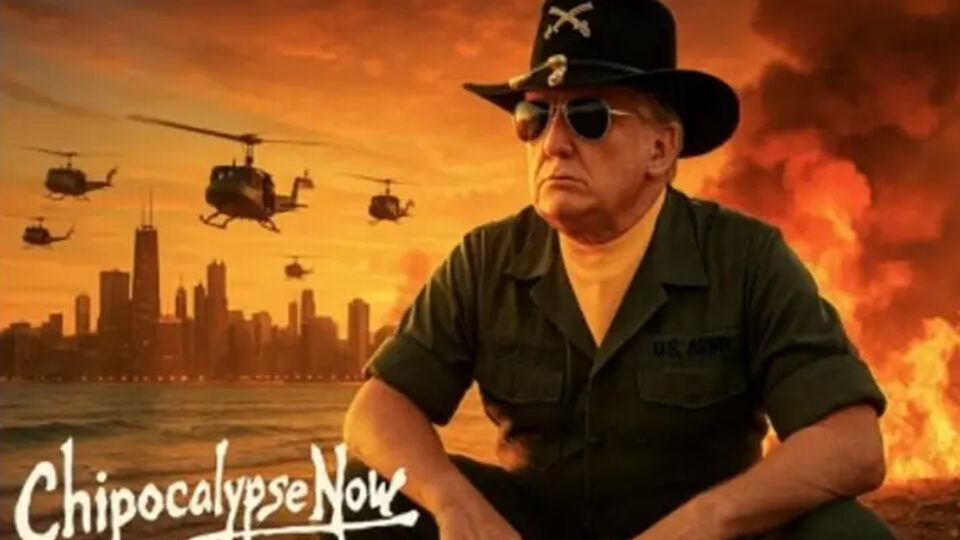 دۆناڵد ترەمپ، سەرۆکی ئەمەریکا لە تۆڕی کۆمەڵایەتی ‘Truth Social’ وێنەیەکی دروستکراو بە AIـی بڵاوکردەوە و تێیدا بە جلوبەرگی سەربازییەوە دەردەکەوێت و لە پشتەوەی وێنەکەشی فڕۆکە جەنگییەکان شیکاگۆ بۆردومان دەکەن.